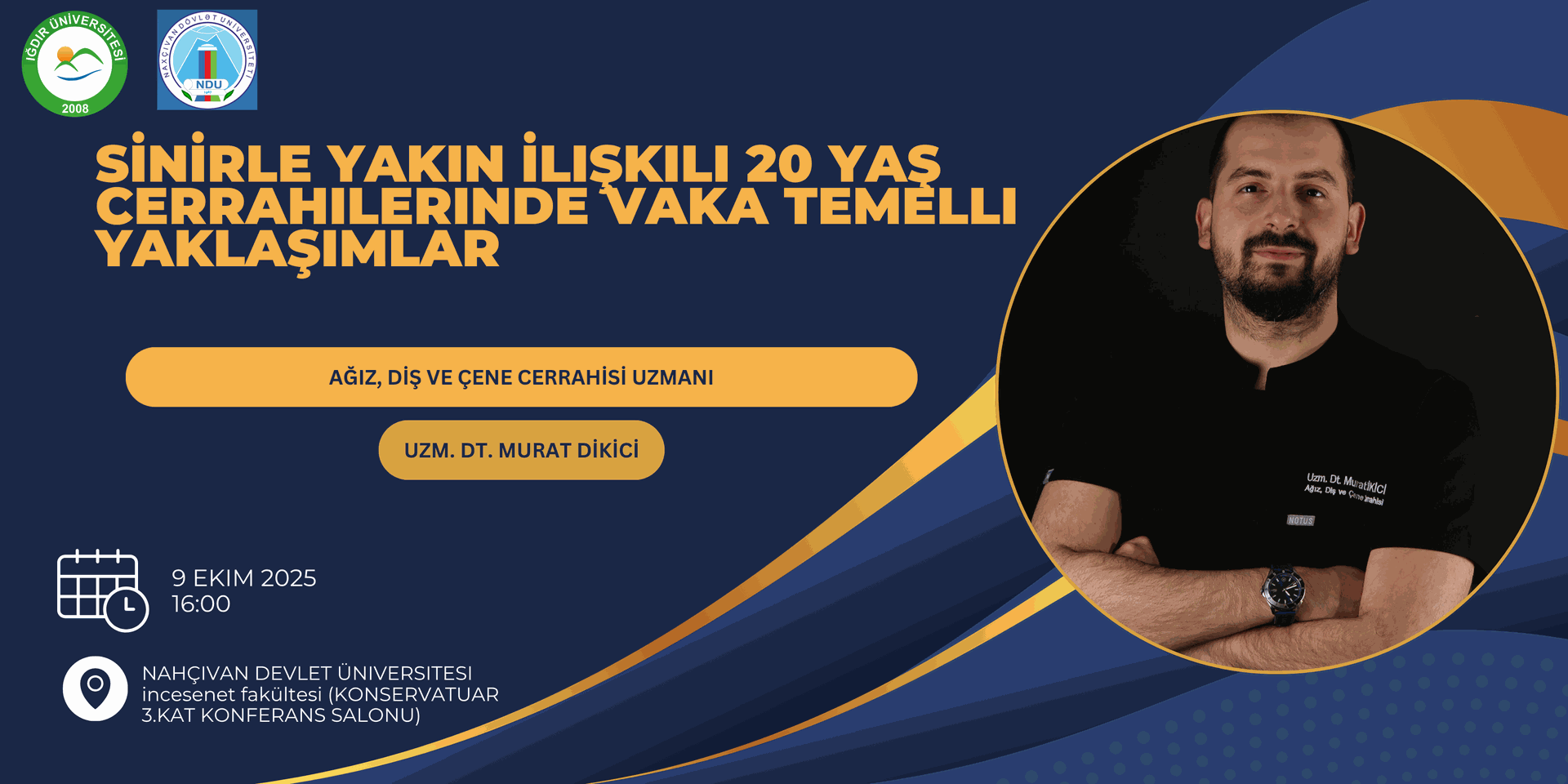 ığdır Üniversitesi Ağız ve Diş Sağlığı Hastanesi hekimlerinden Ağız, Diş ve Çene Cerrahisi Uzmanı Uzm. Dt. Murat Dikici, Nahçıvan Devlet Üniversitesi tarafından düzenlenen bilimsel etkinliğe konuşmacı olarak katıldı.